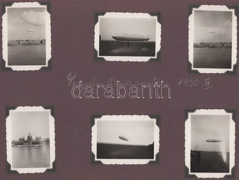 1930 A Zeppelin léghajó Budapesten 6 db feliratozott fotó albumlapon 6x9 cm