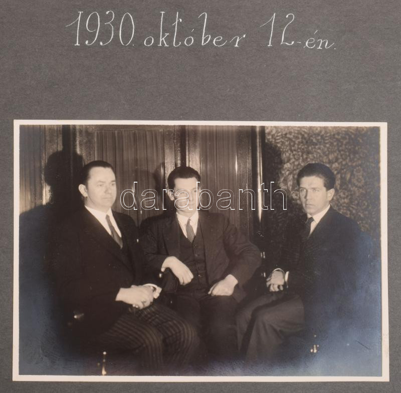 1930 Budapest Székesfővárosi Községi Takarékpénztár Rt. Tisztviselőinek Sportegyesülete Firkovits Béla elnöknek készített emlékalbum fotókkal, benne 7 db a csapat által elnyert különféle díj serleg fotója, valamint a győztes csapatok 7 db fotója. Takarékpénztárak és Bankok Egyesülete serlege, stb. 28x22 cm