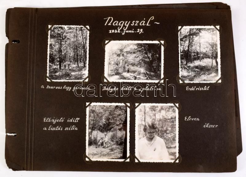 1932 Magyarországi kirándulás képei. Nagyszál, Ráckeve, Angyali sziget, Zsíroshegy, Svábhegy A Kismarty Lechner család hagyatékából, kb 60 db feliratozott fotó albumlapokon