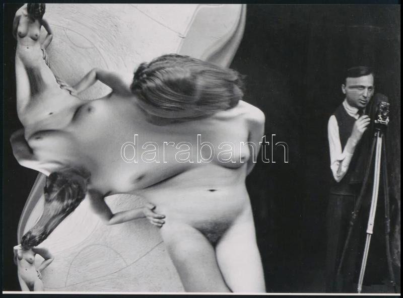1933 Kertész Andor (később André Kertész) (1894-1985) magyar (később francia - amerikai) fotóművész felvétele (Torzítások sorozatból a 91.sz.), 1 db modern nagyítás, jelzés nélkül, a felvétel egyben önarckép is, 15x21 cm