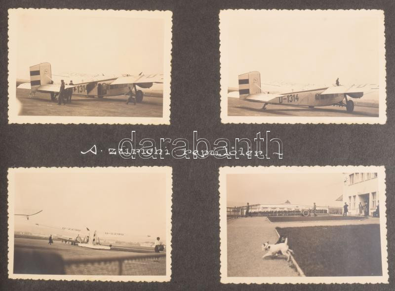 1933 Svájci utazás képes naplója, Több mint 200 db, szépen gyűjtött városképes fotó Bern, Zürich, Schaffhausen, stb. feliratozott lapokon, albumban