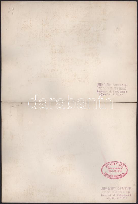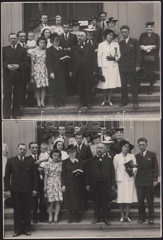 1941 Csoportképek, 2 db fotó, a hátoldalon Schütz Ede épület- és műlakatos, illetve Pfeifer Jenő fotóriporter pecsétjével jelzettek, 17,5x23,5 cm