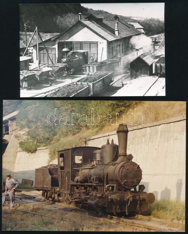 Bányavasúti szerelvények, mozdonyok, 2 db fotó, 9×14 és 12,5×17,5 cm