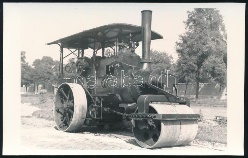 Gőzhajtású úthenger, reprodukciós fotó, 9×14 cm