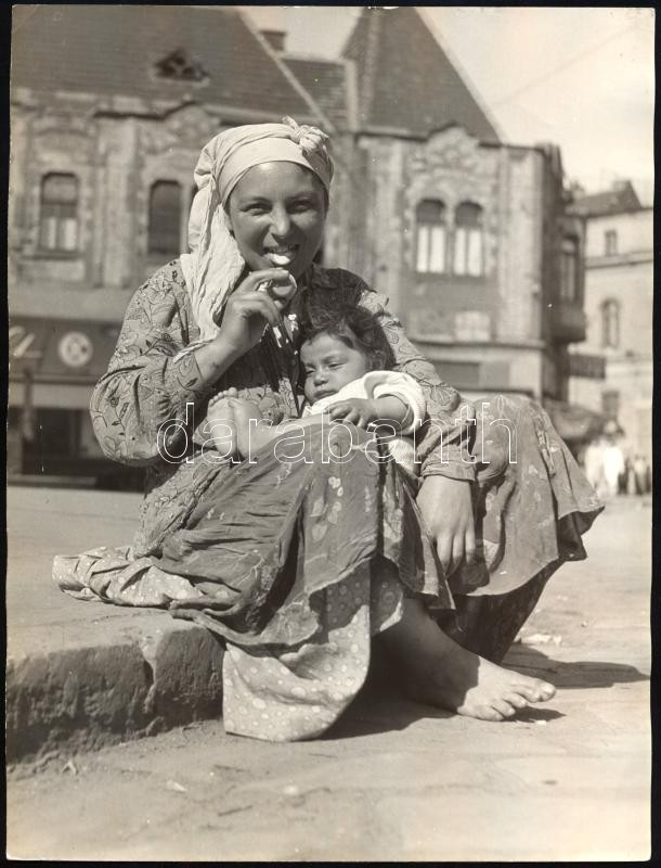 Kovács Ernő (?-): Óbuda, cigány asszony, hátoldalon feliratozott fotó, 24×18 cm