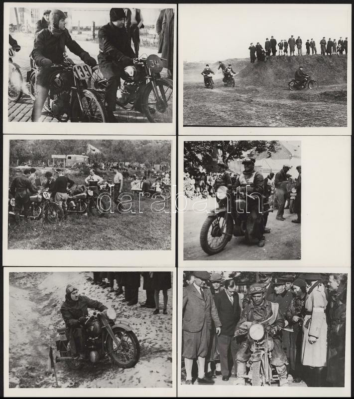 Motorversenyek és résztvevői, 6 db reprodukciós fotó, hátoldalon feliratozva (KTT verseny Csepel, Hősök emlékversenye 24 órás futam, tihanyi verseny), 9×12 cm