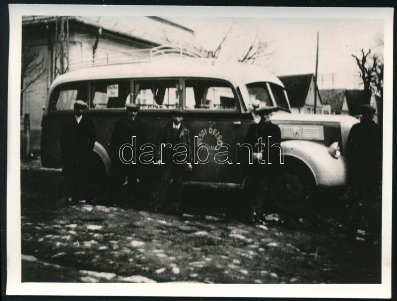 Pesti Dezső nevű magánfuvaroz (Tolna) autóbusza, reprodukciós fotó, pöndörödéssel, 9×12 cm