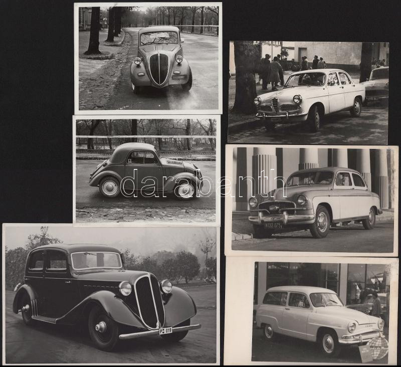 Régi autókról készült fotók, 6 db, 8×13 és 11,5×17,5 cm közötti méretekben