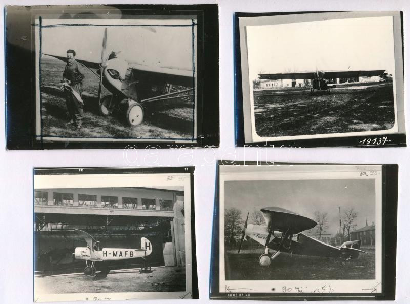 Régi repülőgépekről készült fotók kontakt másolatai, 4 db, 6×7 cm