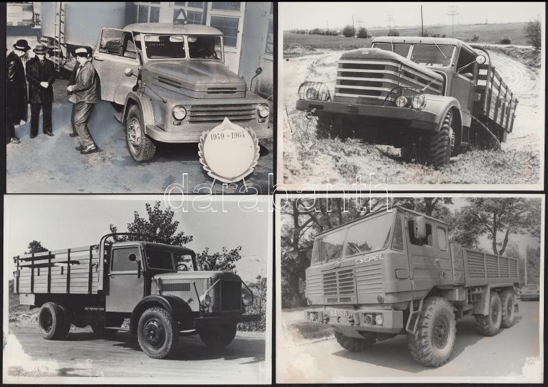 Teherautókról készült fotók, 5 db (Csepel, Baxter, stb.) fotó, retusálással, sérüléssel, 13×18 és 16×22 cm között