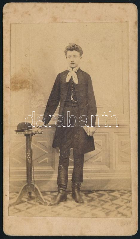 cca 1865 Fiatalember portréja, keményhátú fotó Deák László pesti műterméből, 10,5×6,5 cm