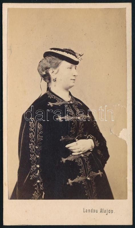 cca 1865 Női portré, keményhátú fotó Landau Alajos szegedi műterméből, kisebb sérüléssel, 10,5×6,5 cm