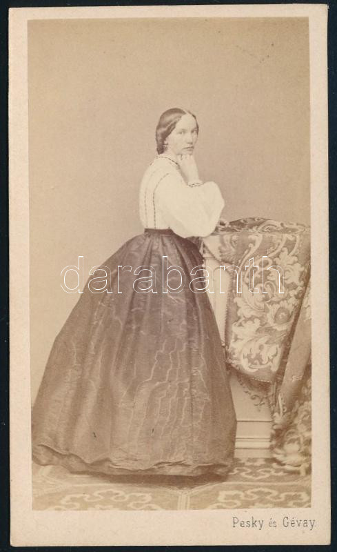 cca 1865 Női portré, keményhátú fotó Pesky és Gévay pesti műterméből, 10,5×6,5 cm