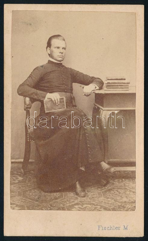 cca 1867 Dányy István káplán portréja, keményhátú fotó Fischler Manó losonci műterméből, 10,5×6,5 cm