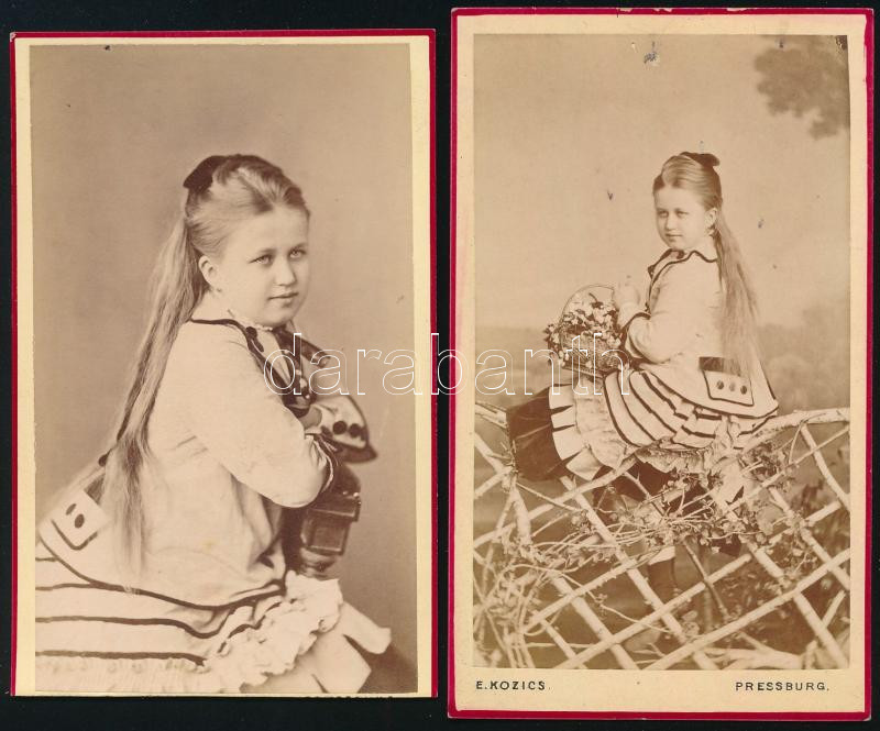 cca 1870 Kislány portréi, 2 db vizitkártya Kozics Ede pozsonyi (Pressburg, Bratislava) műterméből, az egyik alja vágott, 10x6,5 cm