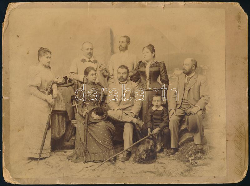 cca 1880 Családi csoportkép, keményhátú fotó Divald Károly eperjesi műterméből, sarkain és szélein sérülések, 21×28 cm