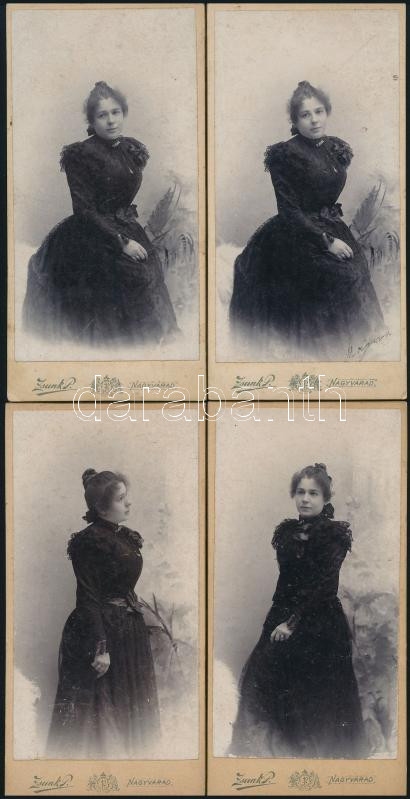 cca 1890 Azonos hölgyről készült 4 db portré, keményhátú fotók Zsunk nagyváradi műterméből, 15×7,5 cm