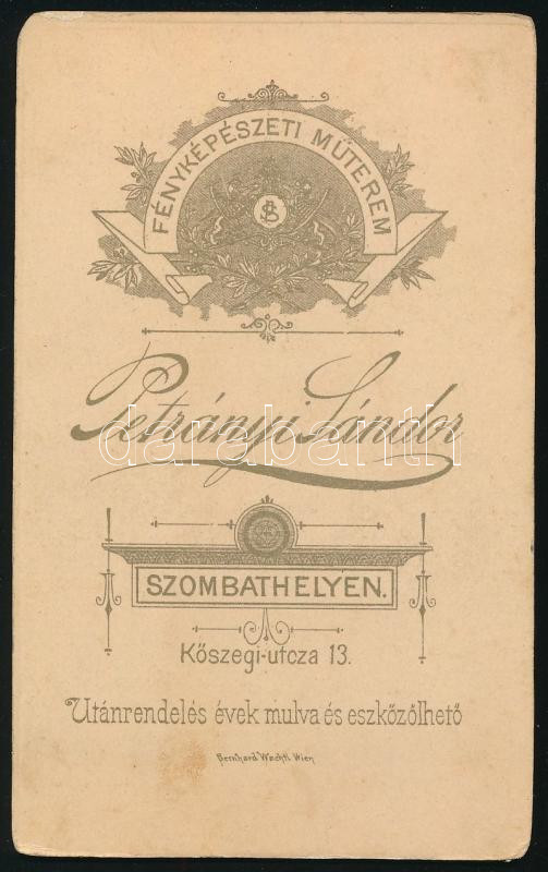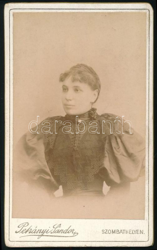 cca 1890 Fiatal hölgy portréja, vizitkártya Petrányi Sándor szombathelyi műterméből, 10,5x6,5 cm (Ritka!)