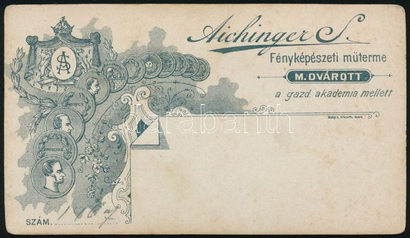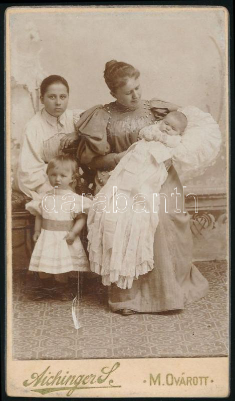 cca 1900 Anya gyermekeivel, vizitkártya Aichinger S. mosonmagyaróvári műterméből, 10x6 cm
