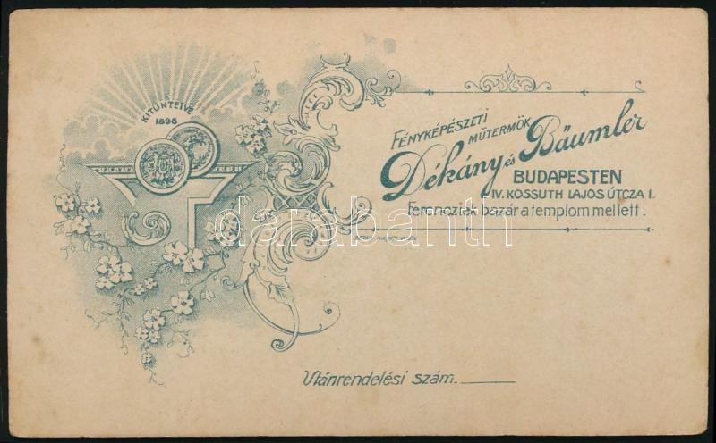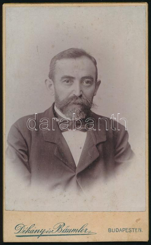 cca 1900 Férfiportré, vizitkártya Dékány és Bäumler budapesti műterméből, 10,5x6,5 cm