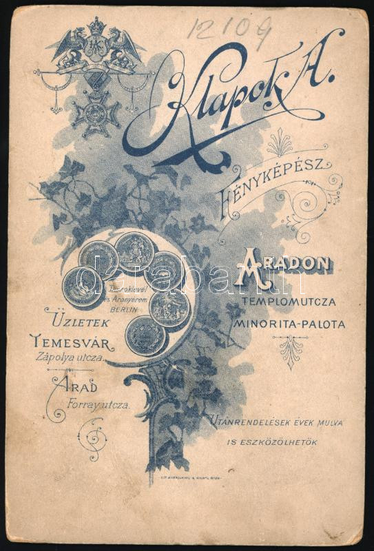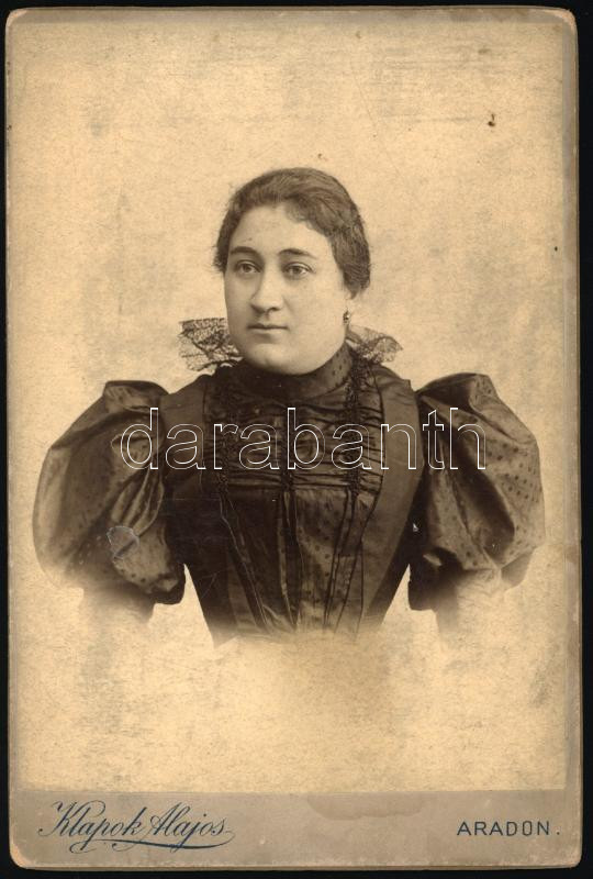 cca 1900 Női portré, kabinetfotó Klapok Alajos aradi műterméből, 16x11 cm