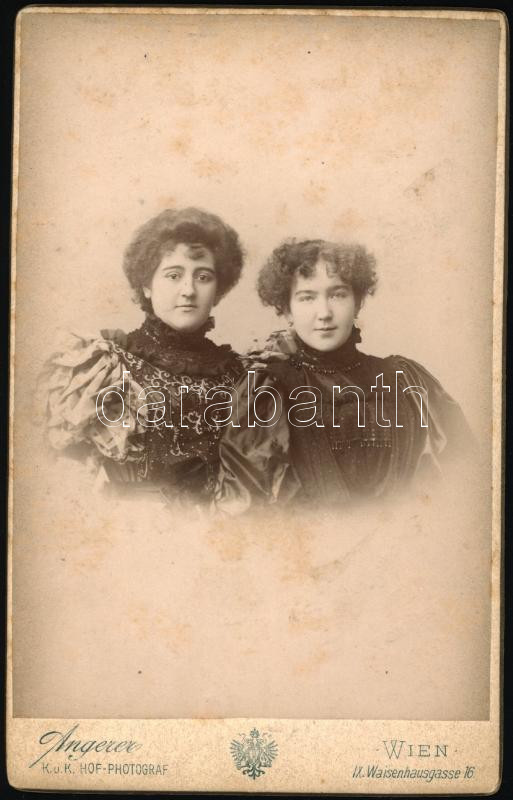 cca 1910 Czullik lányok, Czullik Betti és Inez, a Liechtenstein hercegi kertek igazgatója lányainak fotója, keméyhátú fotó Victor Angerer bécsi műterméből, a felületén kis foltokkal, 16,5×10,5 cm