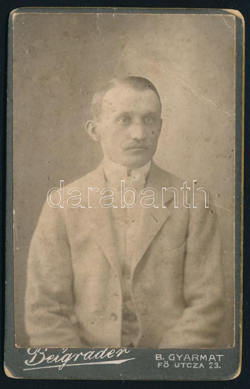 cca 1910 Férfiportré, keményhátú fotó Belgráder balassagyarmati műterméből, 10,5×6,5 cm