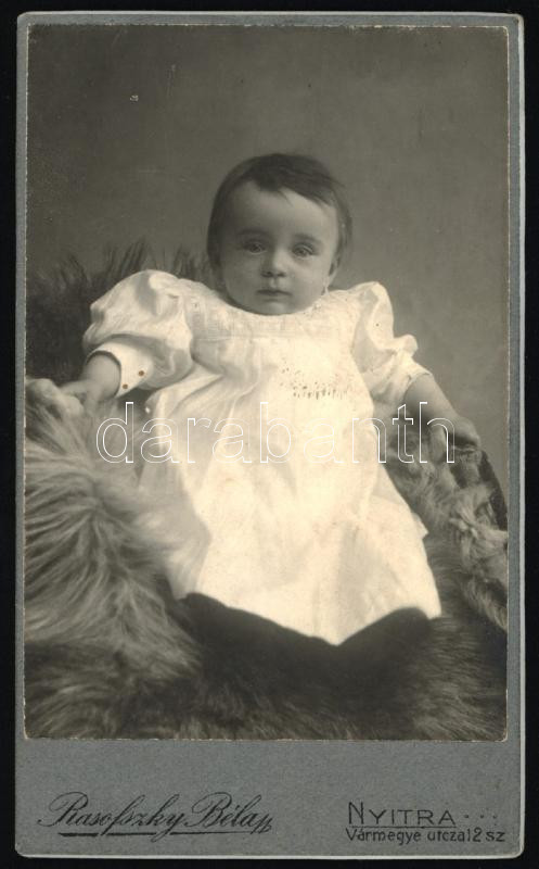 cca 1910 Kisgyermek portréja, vizitkártya Rasofszky (Rasovszky) Béla nyitrai műterméből, 10,5x6,5 cm