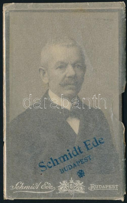 cca 1910 Létay Péter, aláírt, keményhátú fotó Schmidt Ede budapesti műterméből, eredeti átadótasakban, 10,5×6,5 cm