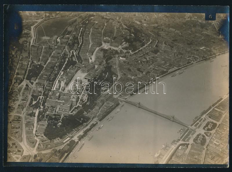 cca 1920-1930 Budapest, Tabán, Várhegy, Víziváros, Duna, Lánchíd, légi felvétel, 13×18 cm
