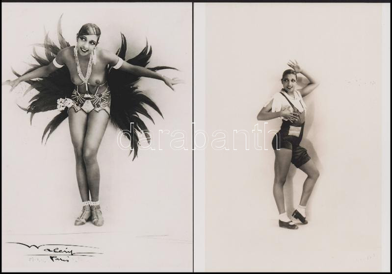 cca 1927 Josephine Baker (1906-1975) francia énekesnő, táncosnő, előadóművész, 2 db modern nagyítás, jelzés nélkül, 21x15 cm