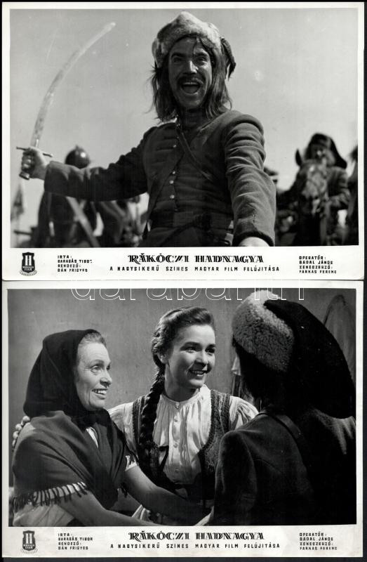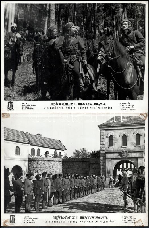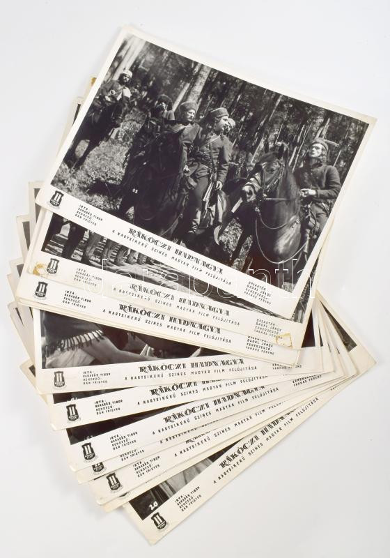 cca 1979 előtt készült, "Rákóczi hadnagya" című magyar film jelenetei és szereplői, 13 db vintage produkciós filmfotó (vitrinfotó, lobbyfotó) ezüst zselatinos fotópapíron, a használatból eredő (esetleges) kisebb hibákkal, 18x24 cm