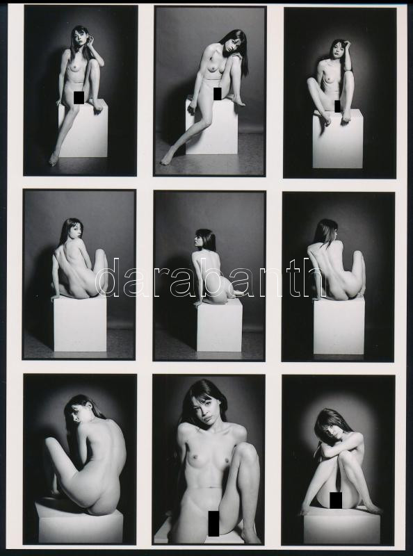 cca 1986 "Csak üldögél egy kockán", szolidan erotikus műtermi felvételek kontaktlapon, 1 db modern nagyítás, jelzés nélkül, 21x15 cm