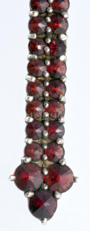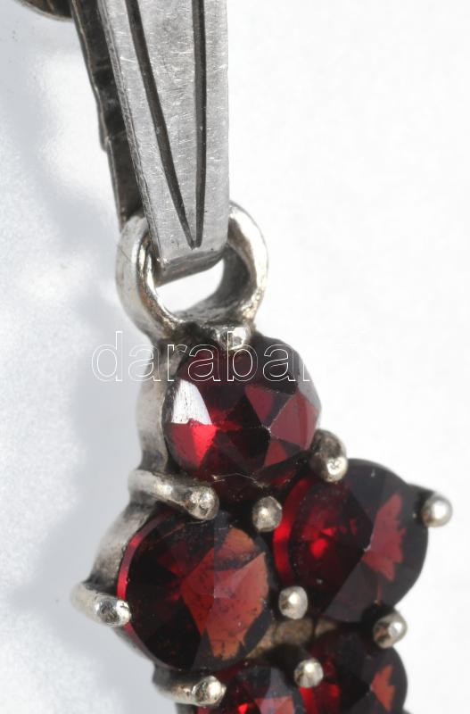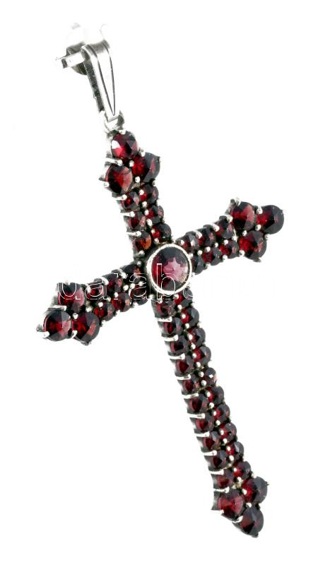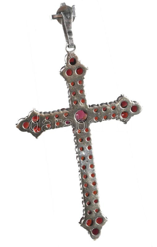 Antik ezüst (Ag) kereszt medál, cseh gránátokkal kirakva, jelzés nélkül, cca 5,5x4 cm