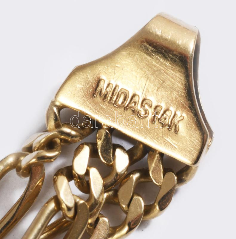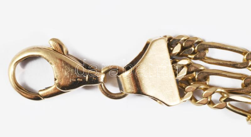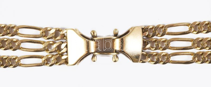 Arany (Au) karkötő háromsoros figaro 5+1 szemekkel, jelzett, 14 karátos, h: 21 cm, nettó 11,9g