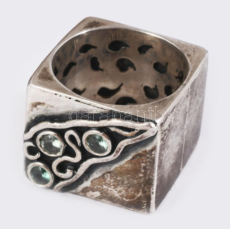 Ezüst (Ag) design gyűrű, kövekkel, m: 53-55, bruttó 11g