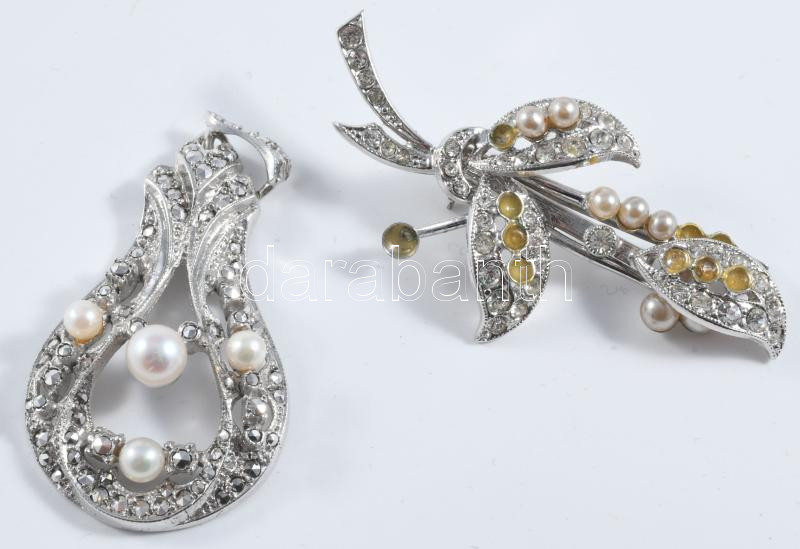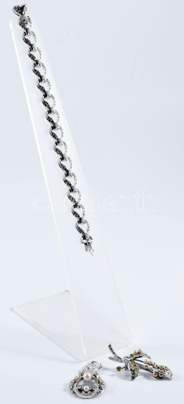Ezüst (Ag) ékszer szett, kő- és gyöngyhiányokkal, jelzett, bruttó 44g