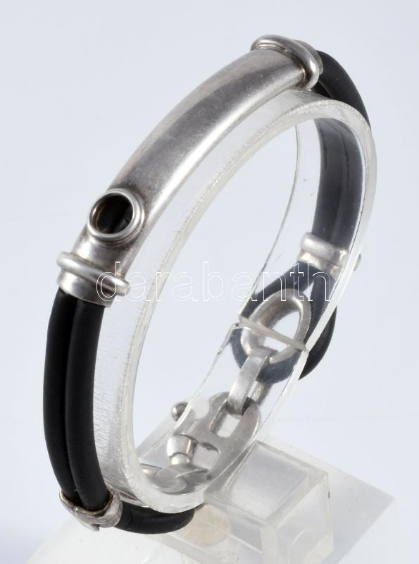 Ezüst (Ag) és kaucsuk karkötő, jelzett, bruttó 17g