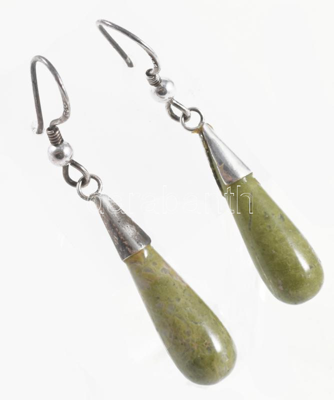 Ezüst (Ag) fülbevaló pár, epidot cseppel, jelzett, bruttó 3,9g