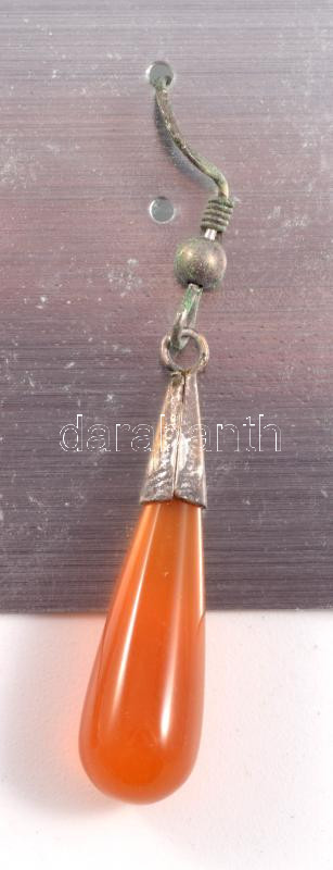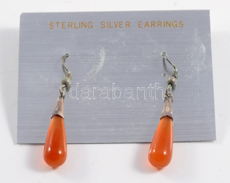 Ezüst (Ag) fülbevaló pár, karneol cseppel, bontatlan.