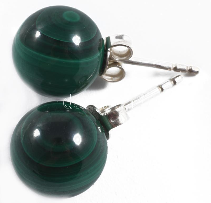 Ezüst (Ag) fülbevaló pár, malachit golyókkal, jelzett, bruttó 4,6g