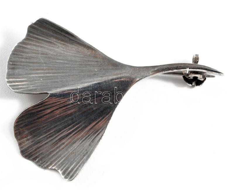 Ezüst (Ag) ginkgo biloba bross, 800-as, jelzett, nettó 2,8g