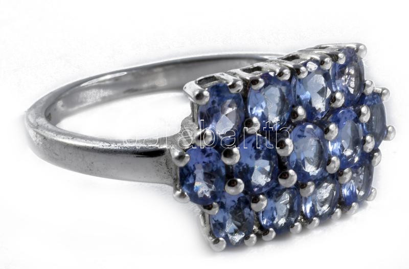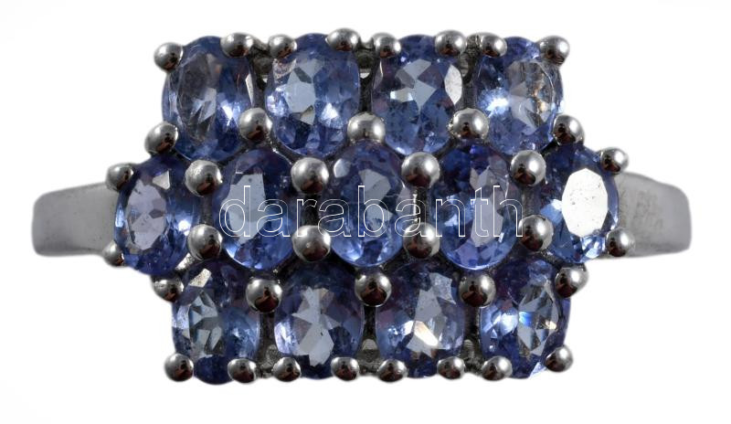 Ezüst (Ag) gyűrű, lila kövekkel, m:59, bruttó 4g