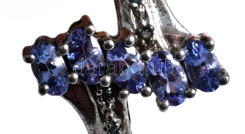 Ezüst (Ag) gyűrű, lila kövekkel, m:60, bruttó 3,8g
