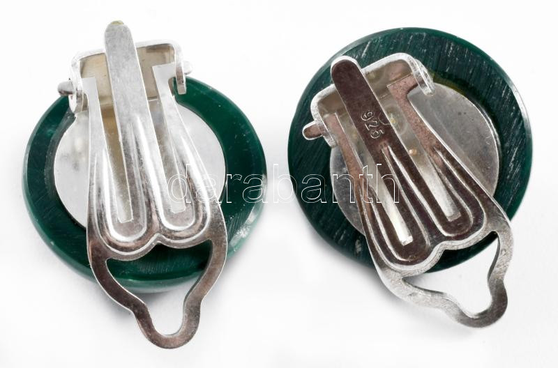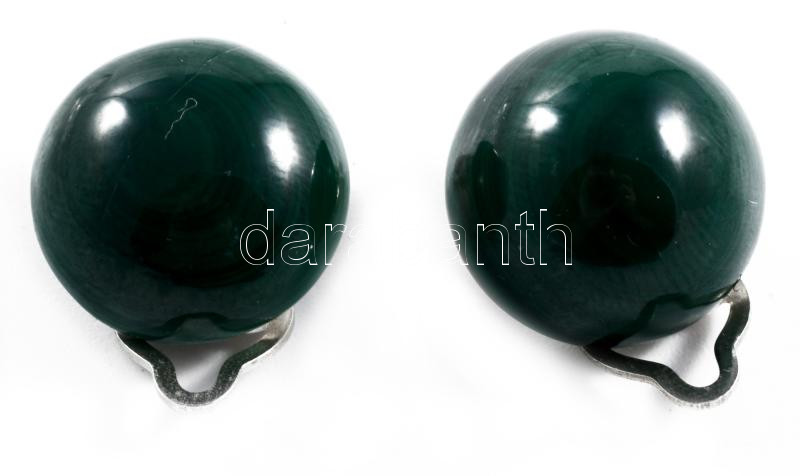 Ezüst (Ag) klipsz fülbevaló pár, malachittal, jelzett, bruttó 10,6g