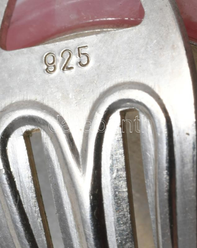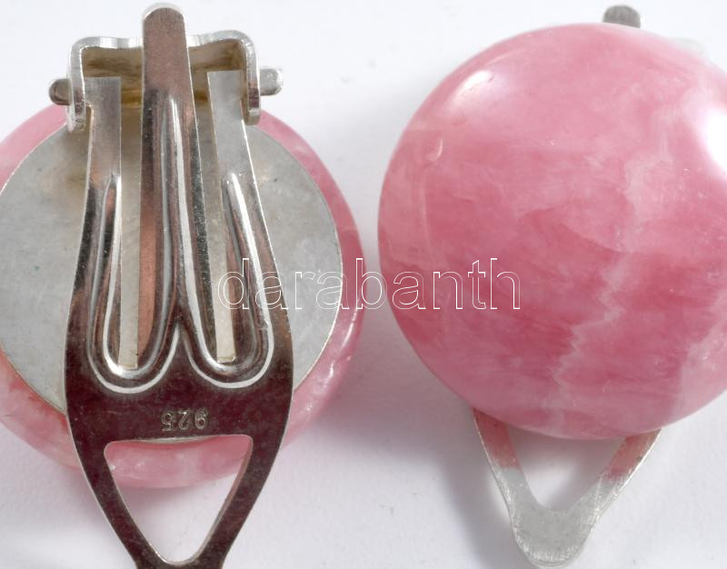 Ezüst (Ag) klipsz fülbevaló pár, rózsaszín kővel, jelzett, bruttó 9,7g