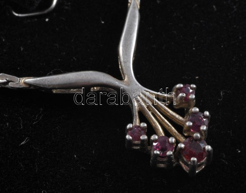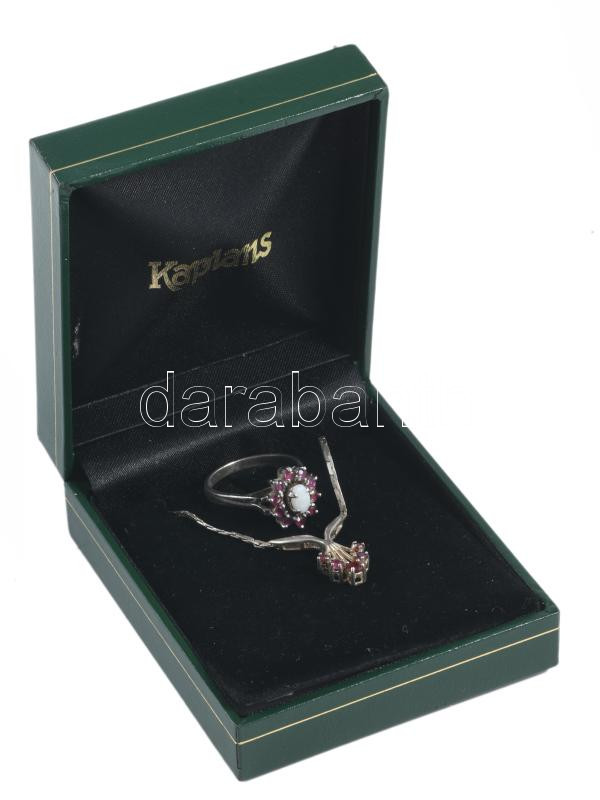 Ezüst (Ag) nyaklánc és gyűrű szett, kövekkel, 925-ös, m: 56, bruttó 8,5g, díszdobozban.