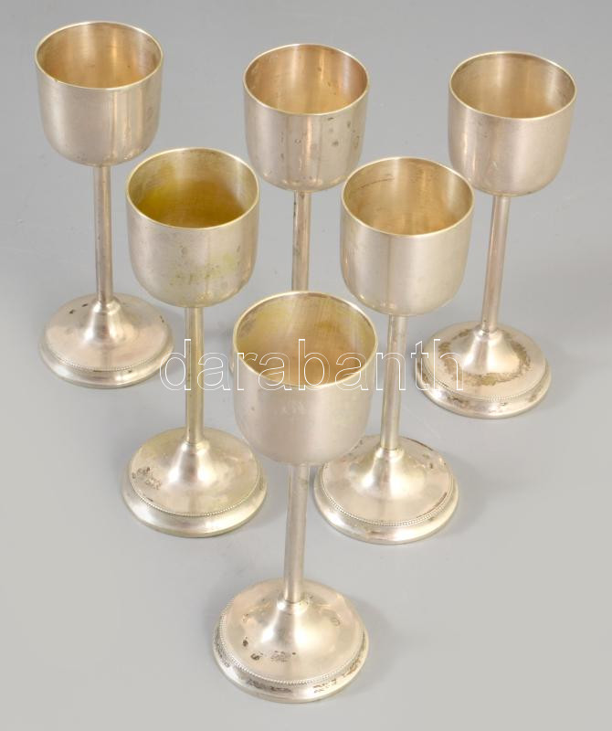 Ezüst (Ag) pálinkás pohár szett, 6 darab, jelzett, Pest, 1872-1937 közötti fémjel, 800 ezrelékes ezüst, m: 10,5 cm, nettó 256g
