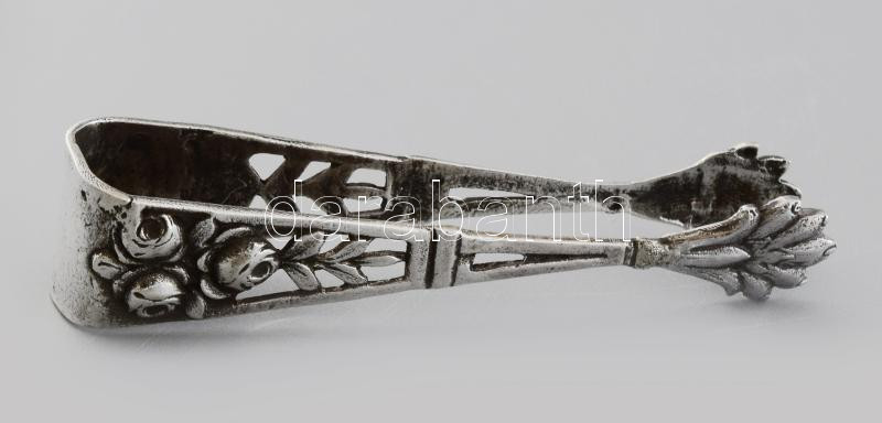 Ezüst (Ag) rózsanyelű cukorcsipesz, jelzett, h: 8,4 cm, nettó: 16,6 g