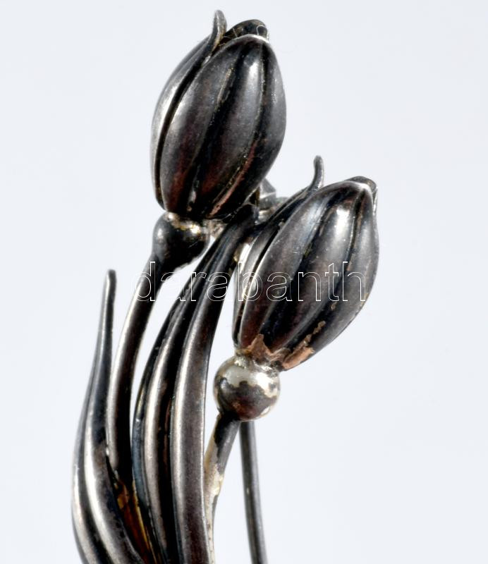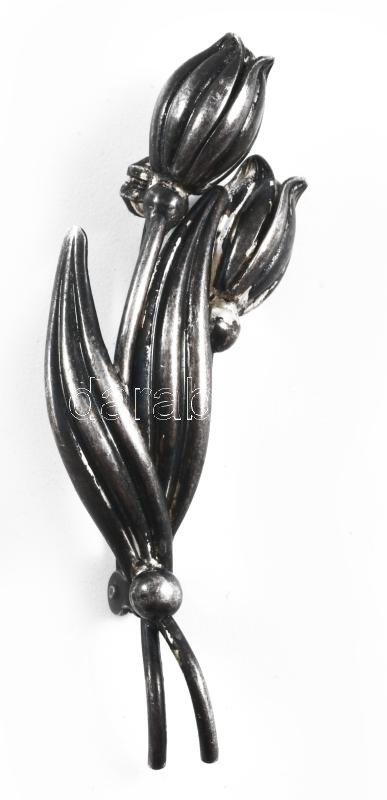 Ezüst (Ag) virág bross, jelzett, 800-as, 4,7g